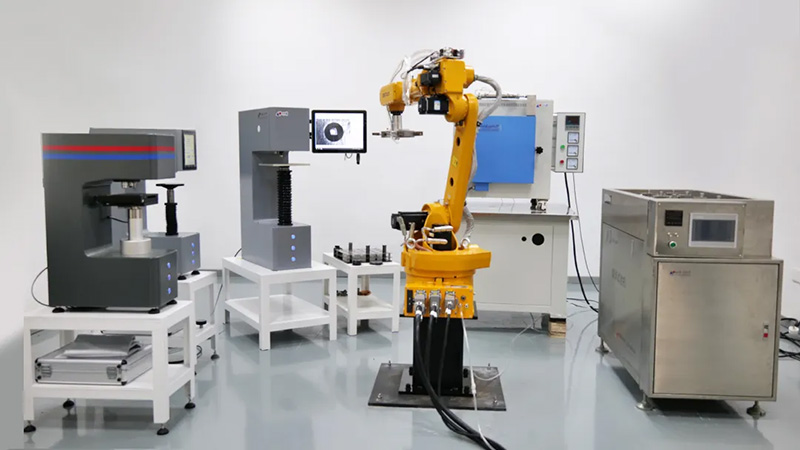 无人硬度实验室创新性地整合了布氏、洛氏、维氏三大智能硬度计,通过高精度机械臂协同工作,可根据不同测试需求灵活配置,实现样品精准定位、硬度测试到数据分析的全流程无人化检测。