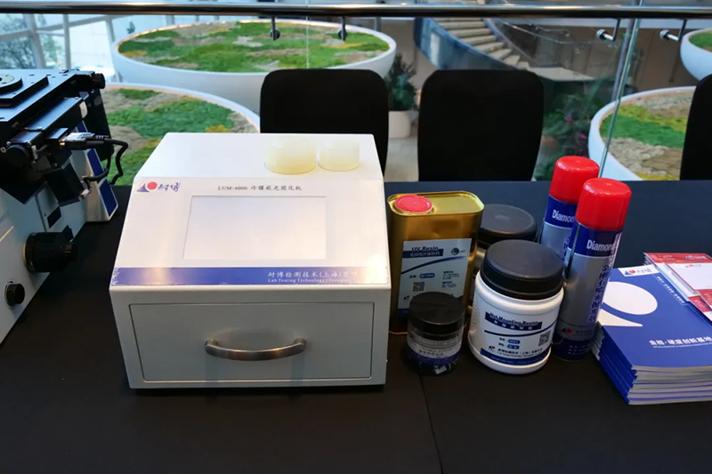 此次展出的自动光固化冷镶嵌机,采用双波长组合:365+395;(395+450、365+450可选);每种波长的三档亮度独立设置,上下、左右、前、后等六面均有面光源及反射膜,光照均匀,固化效率更高。同时,创新的低温模式,样品镶嵌过程中的温度不超过50摄氏度,解决传统热镶嵌的热损伤问题。